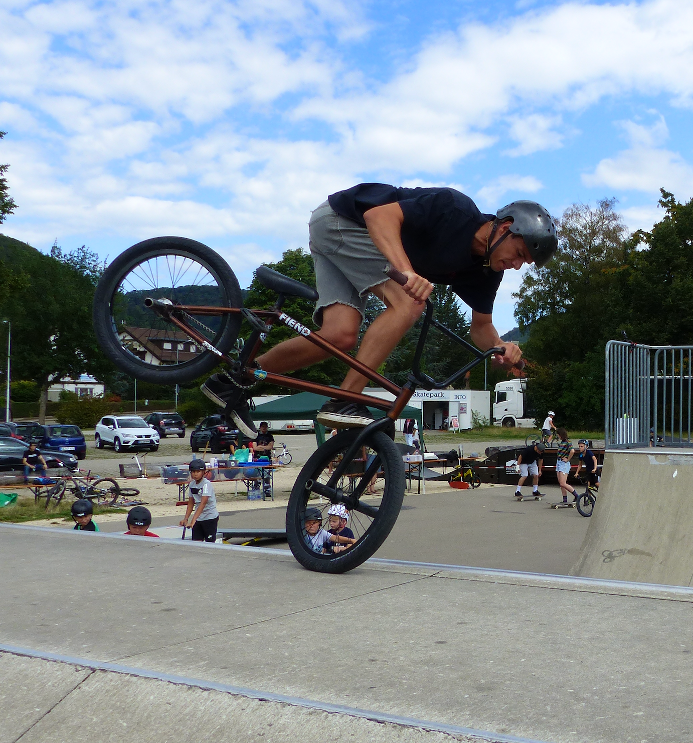 Der Weltkindertag in Geislingen ist jedes Jahr ein besonderer Tag! Irgendwie scheint sich der 20.9. ein schönes-Wetter-Abonnement zugelegt zu haben, denn bei wie gewohnt schönstem Wetter konnten ganz viele Kinder spielen, Neues entdecken, basteln und natürlich durch unseren Skatepark-Parcours cruisen. Mit unserer neuen großen Rampe konnten wir einen besonders coolen Parcours anbieten und dieser war den ganzen Tag über gut belebt. Sogar Oberbürgermeister Ceffalia drehte ein paar Runden mit dem BMX und Rollstuhl. In unserer Balance Boards Ecke ereignete sich noch ein besonderer Moment. Herr Ceffalia bekam von einem unserer Jugendvorstände ein selbst gebautes Balance Board geschenkt. Er war sichtlich erfreut und gerührt von diesem persönlichen Geschenk. Der Weltkindertag ist einfach immer wieder aufs Neue ein besonders schönes Event im Skatepark-Jahr!