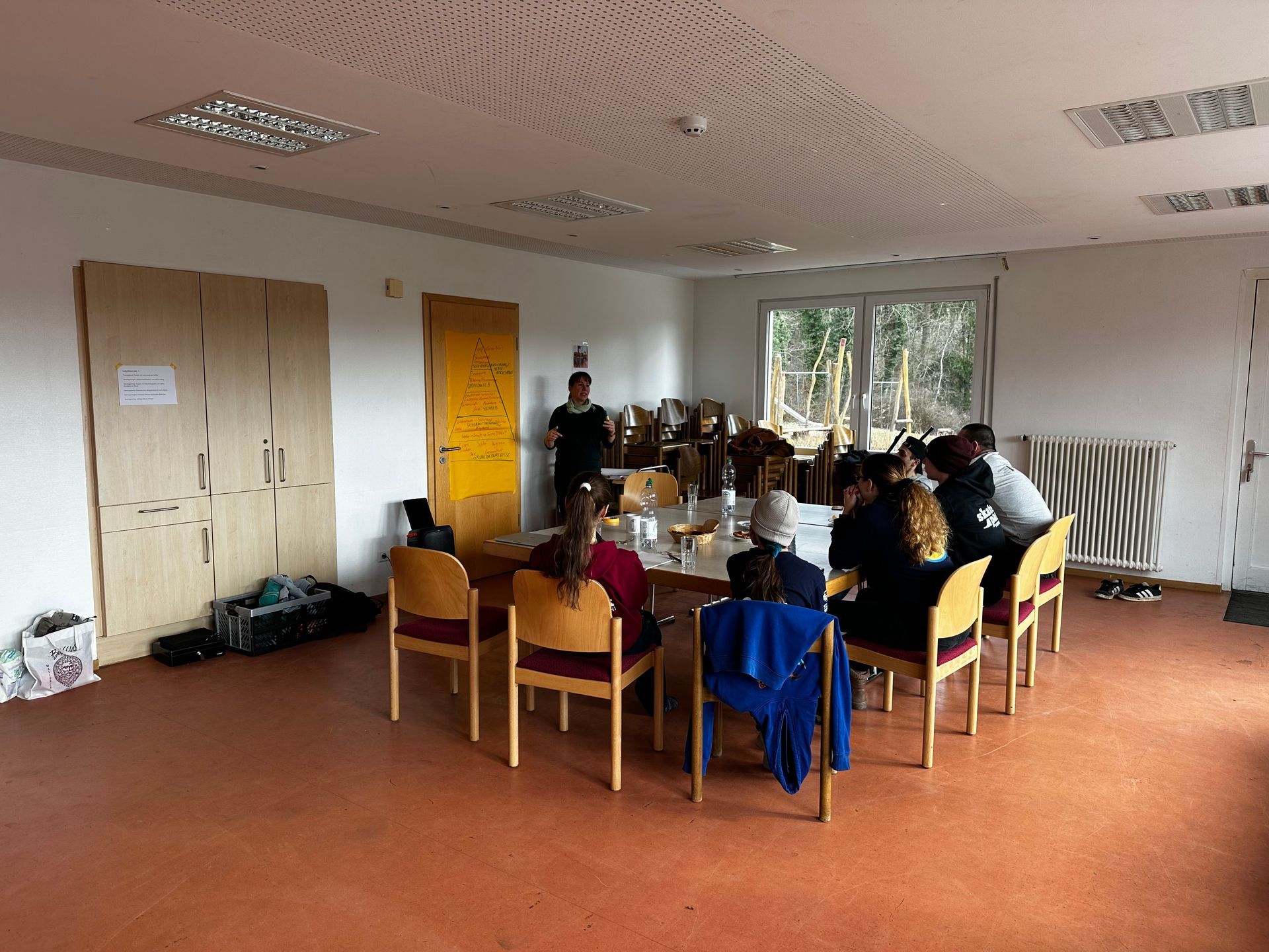 Am Freitagnachmittag ging es los in Richtung Lorch. Bei richtig schönen Frühlingswetter konnten wir das gemietete Waldheim sehr genießen und haben viel Zeit auf der Außenanlage mit Fußballplatz, großer Grillstelle und dem direkt angrenzenden Lorcher Wald verbracht. Am Freitagabend haben wir mit einem Erste Hilfe Kurs gestartet. Unsere Jugendvorständin Katrin engagiert sich als Schulsanitäterin und hat gemeinsam mit Pia einige wichtige Infos und Abläufe für Notfälle im Skatepark vorgetragen. Außerdem wurden manche praktischen Skills wie die stabile Seitenlage oder ein Kopfverband trainiert. Zum Schluss konnte all das neu Gelernte in Fallbeispielen trainiert werden. Wir hatten viel Spaß und haben uns alle nochmal in den Kopf gerufen, woran im Notfall unbedingt gedacht werden sollte.