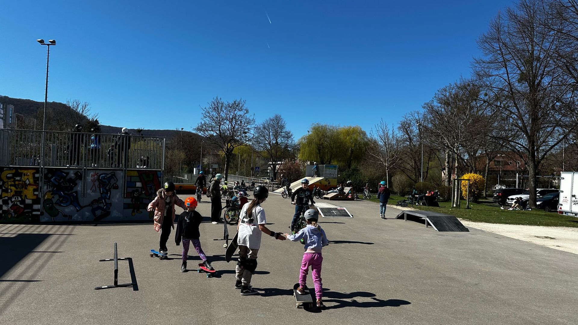 Wie immer hat unsere Workshopreihe mit 4 Workshops im Frühjahr und 4 Workshops im Herbst stattgefunden. Wir hatten richtig Glück mit dem Wetter und konnten bis auf eine Verschiebung alle Workshops wie geplant durch führen. Und mit jedem Jahr werden es mehr Kinder, die diese Stunden im Skatepark genießen. Zum Glück wächst da auch unser Fahrzeug-Angebot kontinuierlich mit!