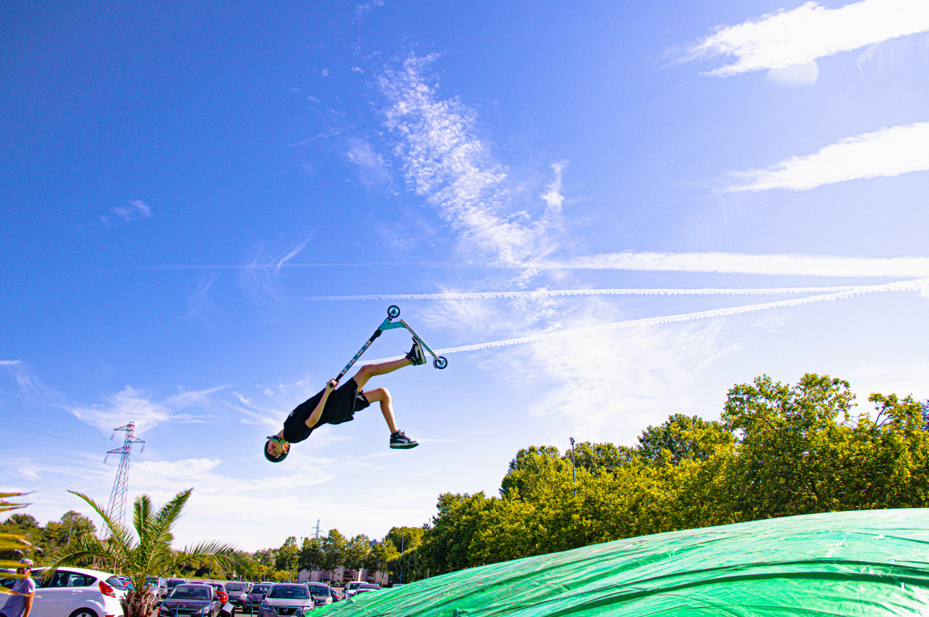 Besonders cool, war das neben dem Skatepark aufgebaute Riesen-Luftkissen, in das man über zwei Rampen hinein springen konnte. Die Jugendlichen waren unermüdlich und schafften immer größere und immer krassere Sprünge!